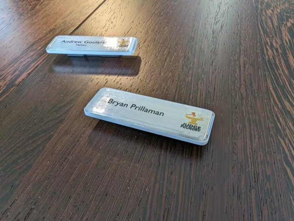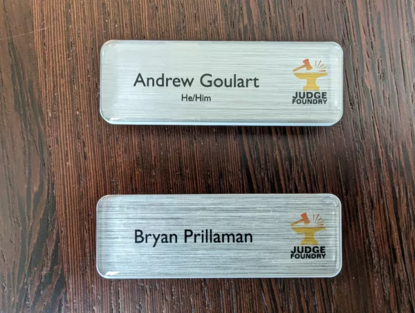 Do TOs and other judges keep calling you “buddy,” “sport,” or other nicknames that indicate that they’ve clearly forgotten your name, but are too embarrassed to admit it? Help them out by wearing a Judge Foundry name badge! This name badge will be emblazoned with our iconic logo, plus your chosen moniker and optional pronouns.